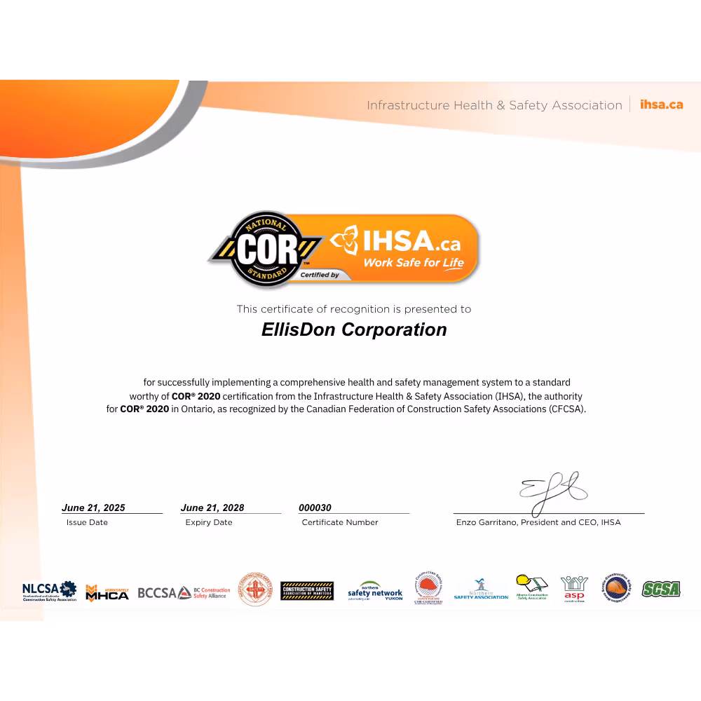 We are certified by the Infrastructure Health & Safety Association (IHSA), reflecting our commitment to strong health and safety practices, continuous improvement, and compliance with Ontario safety standards.