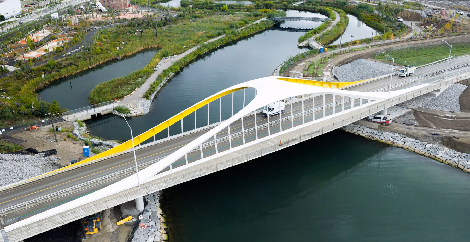Connectivity lies at the heart of the Port Lands vision and nowhere is that more visible than in its four new signature bridges. These bridges, which have been constructed to connect OokweminMinising (pronounced Oh-kway-min Min-nih-sing) with surrounding districts, enhance mobility and ensure seamless access for pedestrians, cyclists, and vehicles. The bridges are not only engineering feats but also architectural landmarks that reflect the design excellence of the project.
