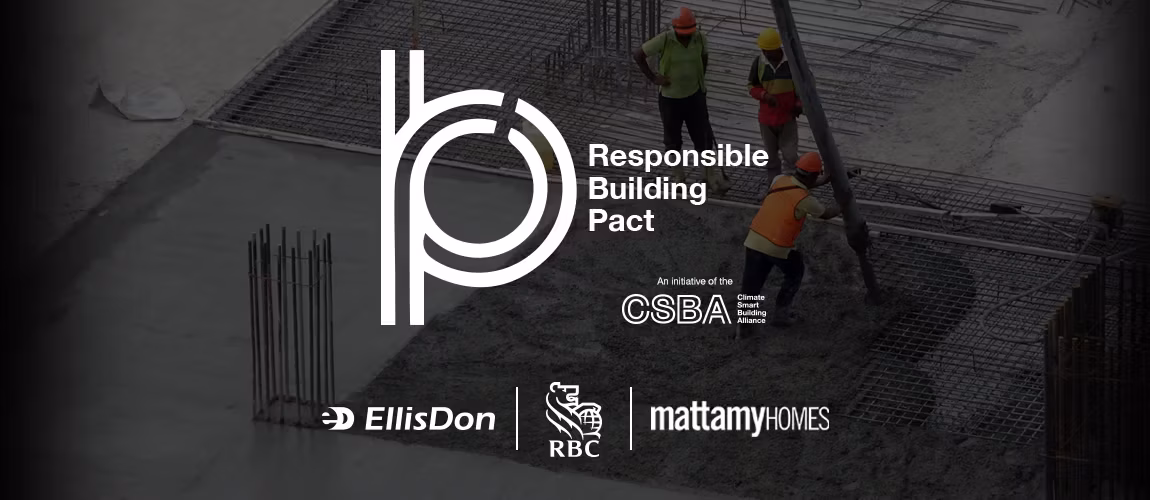MISSISAUGA, ON – June 5, 2024 - The Climate Smart Buildings Alliance, a joint project between EllisDon, RBC, and Mattamy Homes announces the Responsible Buildings Pact, a new cross-industry agreement aimed at increasing the use of low carbon materials in the built environment. The Pact was formally launched today at the Canada Green Building Council’s Building Lasting Change conference in Toronto with the first 23 signatories committing to support the first year of the collective industry effort.