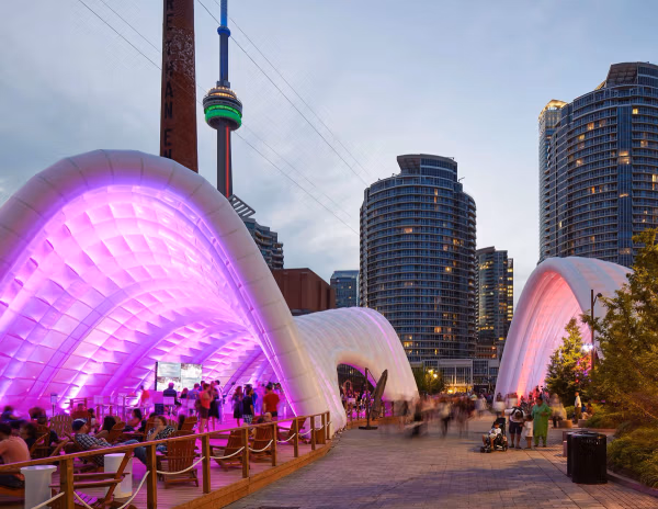 A centerpiece of the Toronto 2015 Pan and Parapan Am Games, the Ontario Celebration Zone at Harbourfront Centre showcased the province’s diversity, culture, and heritage with unparalleled energy. The temporary hub featured two awe-inspiring arched pavilions that housed interactive exhibits, digital media, and culinary experiences. The site also included three outdoor stages, a restaurant, art installations, and thrilling attractions like Ontario’s first accessible zipline, a climbing wall, and the Adrenaline Jump.