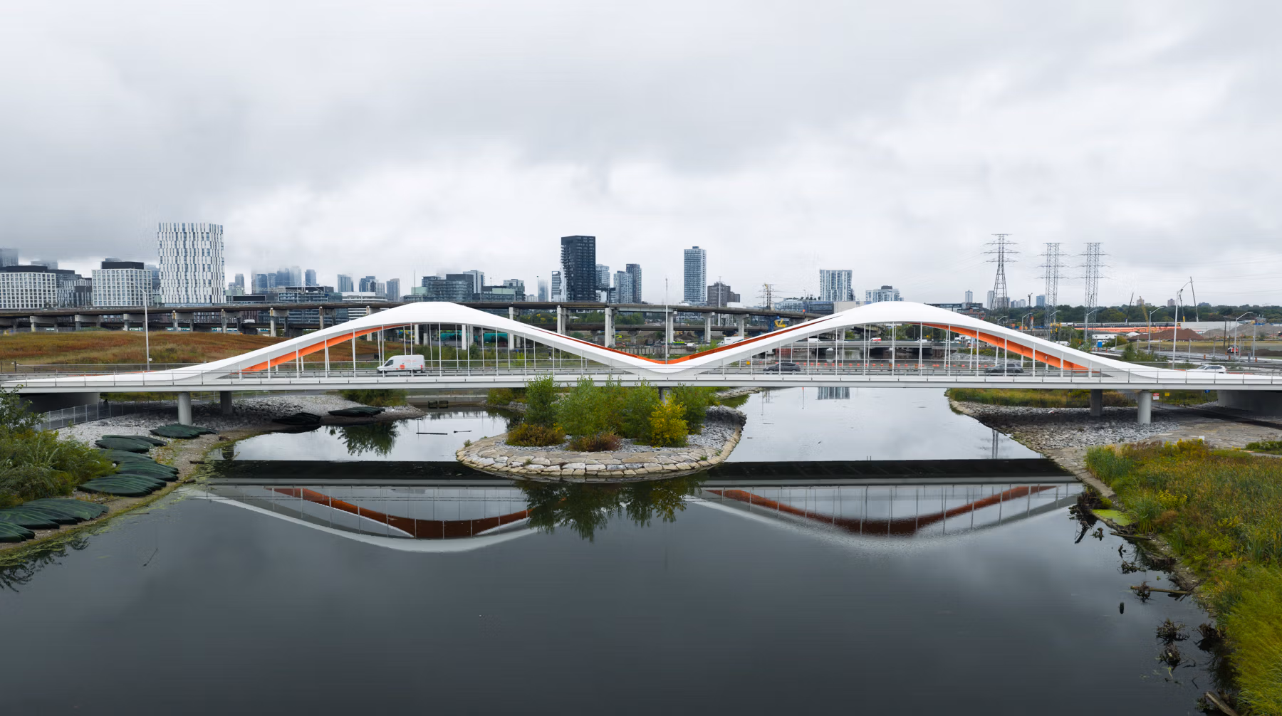 A transformative urban revitalization project, the Port Lands Flood Protection and Enabling Infrastructure initiative reshapes Toronto’s waterfront by mitigating flood risks and creating vibrant, naturalized spaces. Spanning 400 hectares, the project includes the creation of two new outlets for the Don River, a 1.2 km river valley with a naturalized mouth, wetlands, meadows, and parklands, offering flood protection for 300 hectares of downtown Toronto.