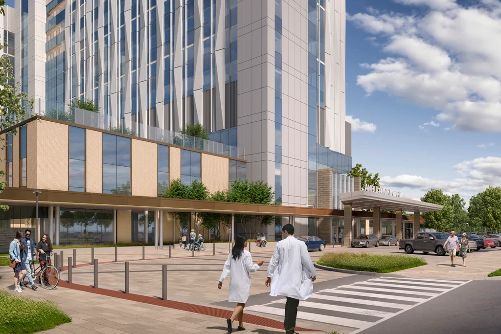 The new 1.3-million-square-foot South Niagara Hospital (SNH) will be centrally located in Niagara Falls, just off the QEW on the corner of Montrose Road and Biggar Road. It will offer a full scope of hospital services, including emergency, critical care, diagnostic, therapeutic and surgical services, as well as Centres of Excellence in complex care, wellness in aging, and stroke. The new hospital will be 12 storeys tall and will have up to 475 beds, of which a significant portion will be new, increasing Niagara Health’s capacity to provide inpatient services for the region. The site will have state-of-the-art infection prevention and control measures and has also been planned with the space and infrastructure to accommodate new and emerging healthcare technology.